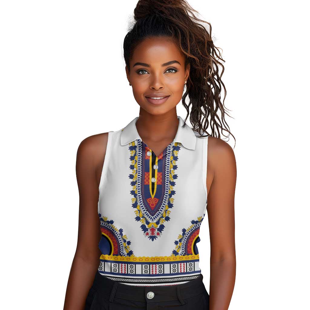 Personalized Liberia White Dashiki Women Sleeveless Polo Shirt