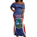 Personalised Afro Liberia Off Shoulder Maxi Dress Coat Of Arms With Flag Map - African Pattern