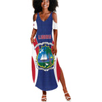 Personalised Afro Liberia Summer Maxi Dress Coat Of Arms With Flag Map - African Pattern
