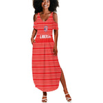 Custom Liberia Football Summer Maxi Dress African Tribal Pattern - Red Jersey