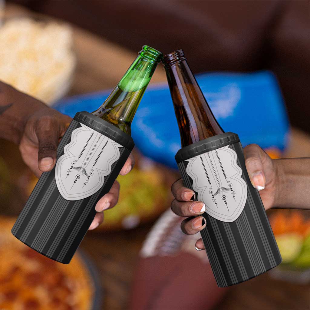 Liberia Kpelle Ethnic Heritage Pattern - Black 4 in 1 Can Cooler Tumbler
