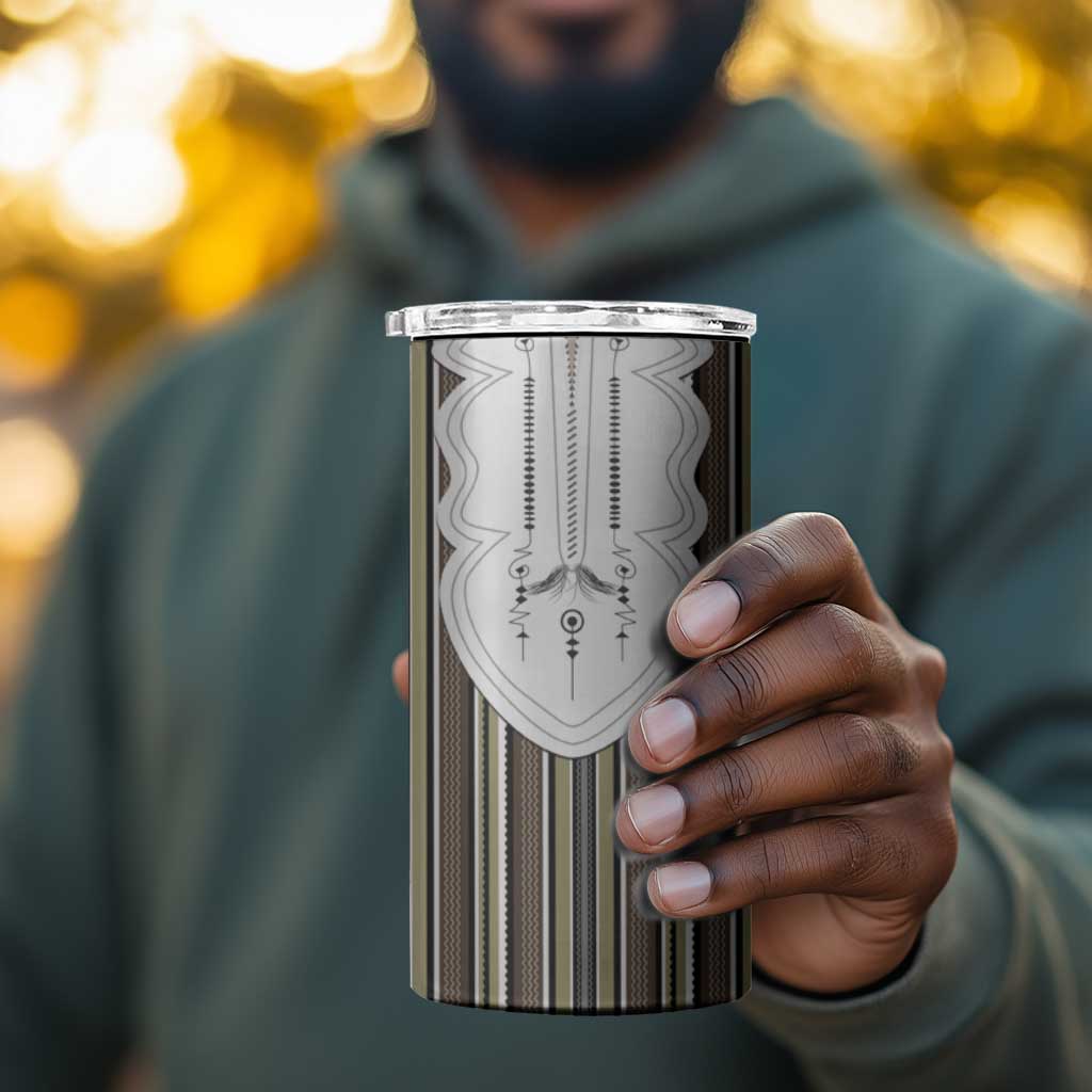 Discover the 4-in-1 Can Cooler Tumbler, a versatile and custom-made drinkware piece handcrafted to the highest quality standards. Perfect for a wide range of beverages, this tumbler ensures your drinks stay at the ideal temperature, whether hot or cold. It's a stylish companion for every adventure, designed to blend functionality with African-inspired design.