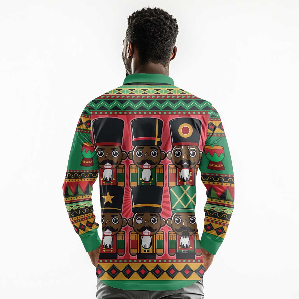 Black Nutcrackers Long Sleeve Polo Shirt Afro Christmas