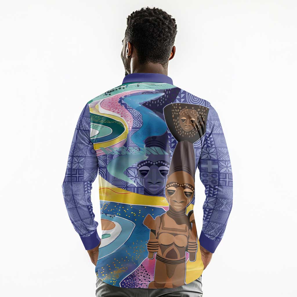 Nigeria Osun-Osogbo Festival Long Sleeve Polo Shirt Oshun God - Yoruba Pattern LT15