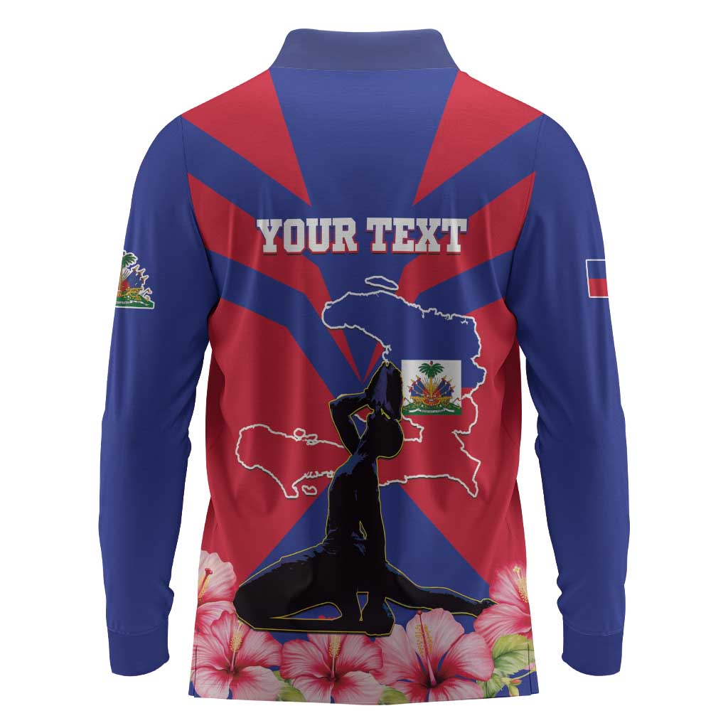 Personalised Happy Haiti Independence Day Long Sleeve Polo Shirt Neg Marron