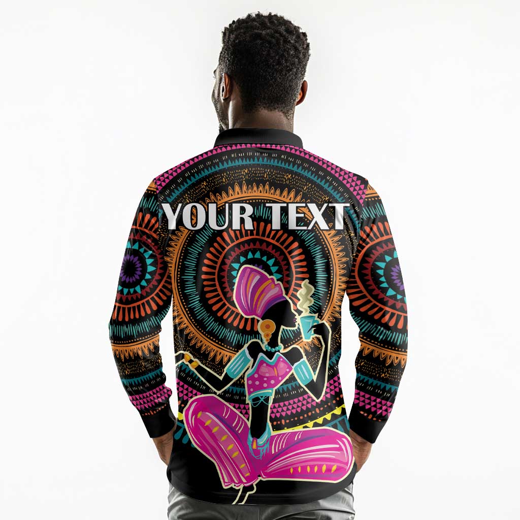 Personalized Africa Long Sleeve Polo Shirt Beautiful Black Woman