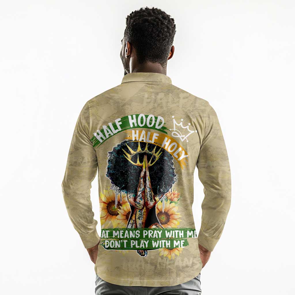 Personalized African Women Long Sleeve Polo Shirt Half Hood Half Holy