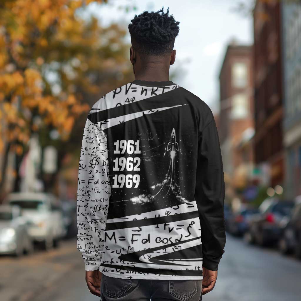 Katherine Johnson Long Sleeve Shirt with Orbital Space Portrait, Historic NASA Launch Dates and Physics