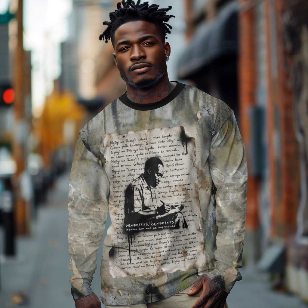 Ngugi wa Thiong O Long Sleeve Shirt Graffiti Resist Statement Ink Pen Revolution Fist Literary Activism