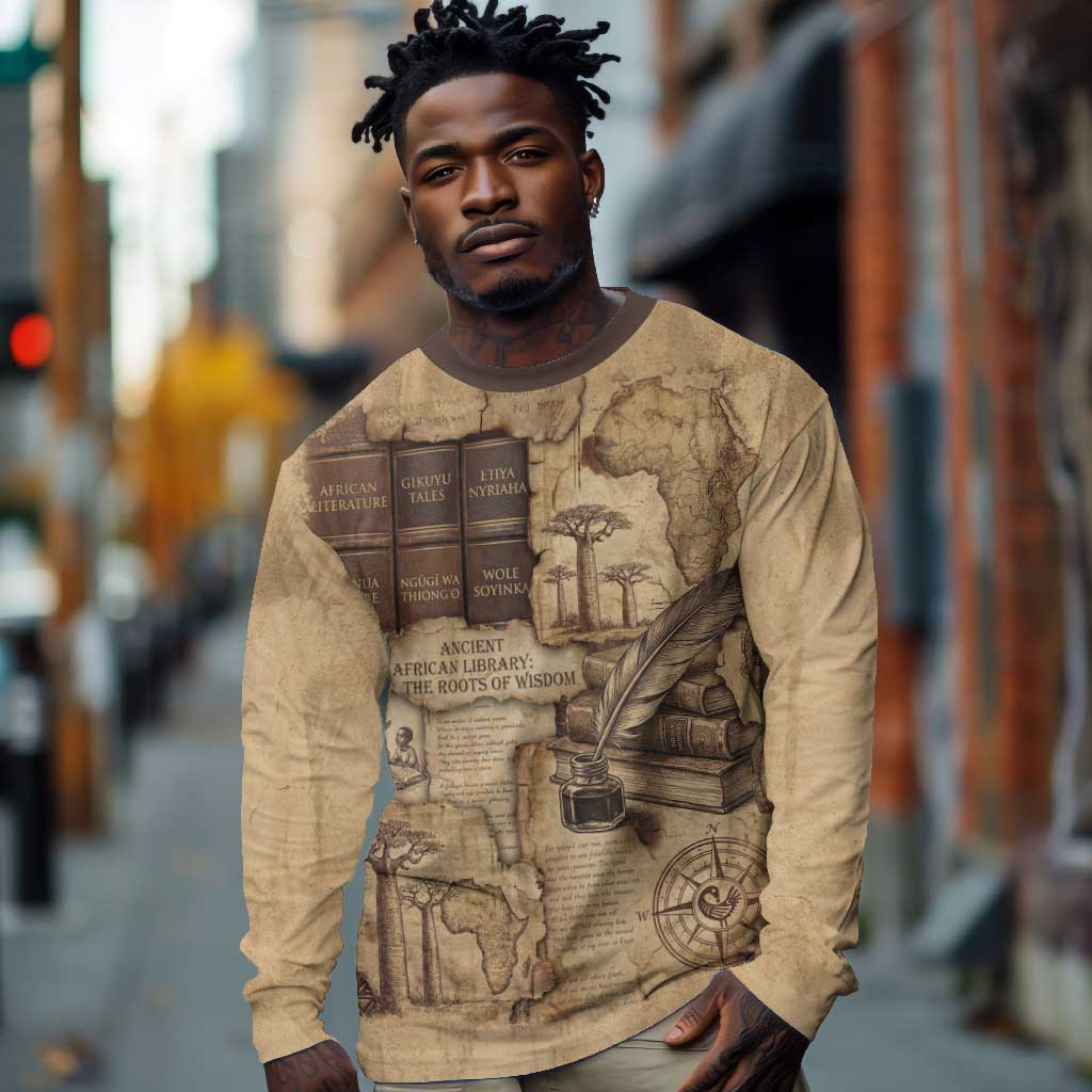 Ngugi wa Thiong O Long Sleeve Shirt Vintage Map Ancient African Library - Decolonising the Mind