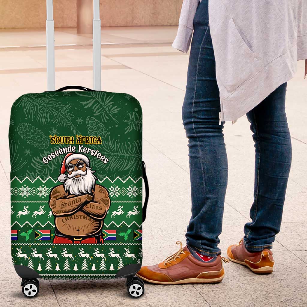 Personalised South Africa Christmas Luggage Cover Cool Santa Claus With South African Map