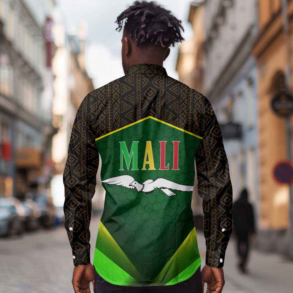 Mali Map Long Sleeve Button Shirt Vulture in Gliding Flight - African Patterns Design