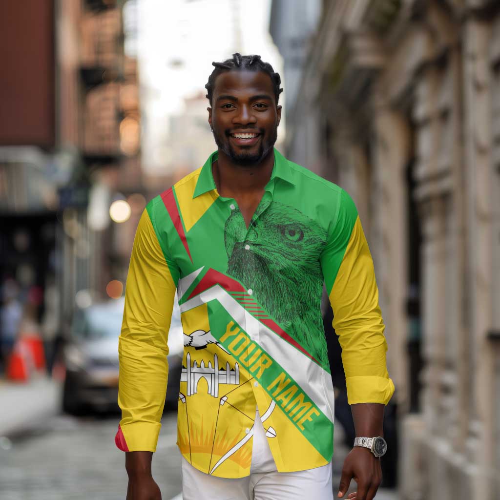 Mali Vulture Eagles Long Sleeve Button Shirt African Pattern Flag Color