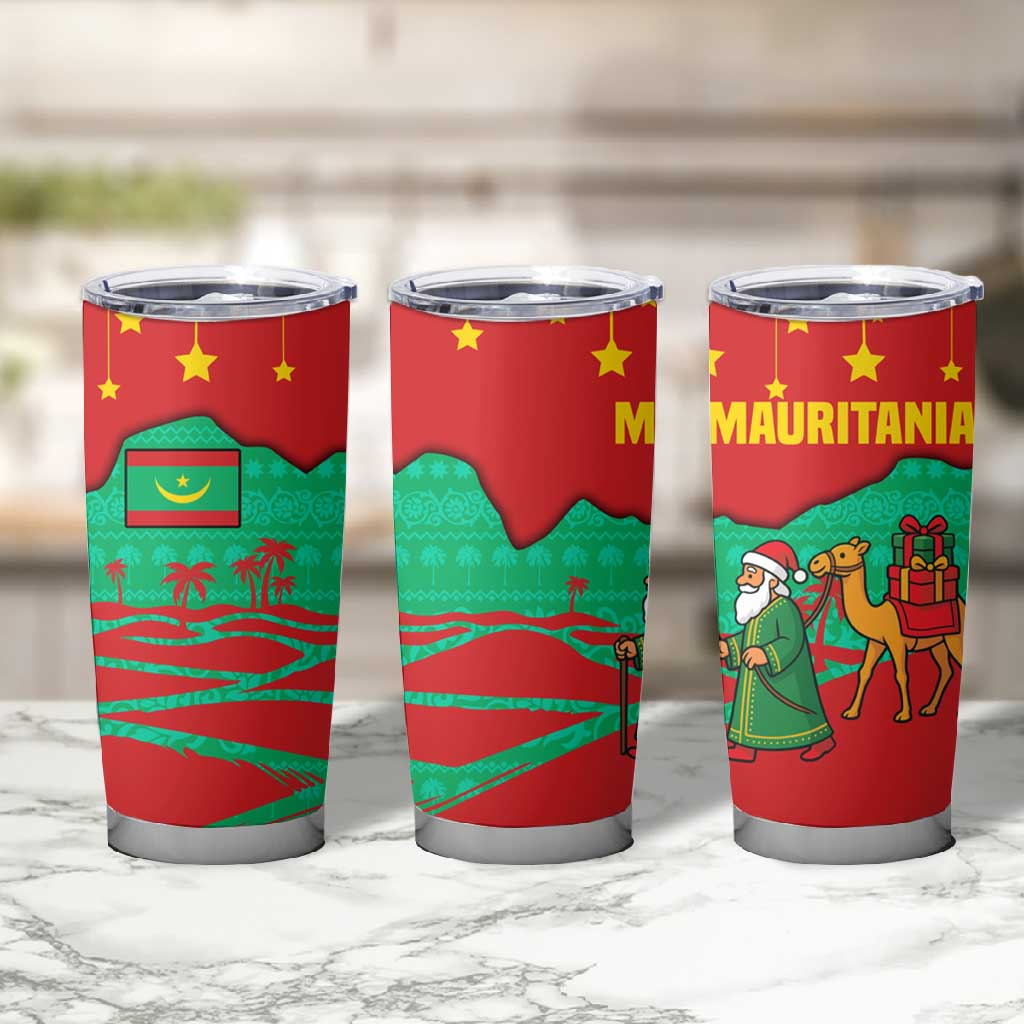 Mauritania Christmas Tumbler Cup Santa Claus Camel Gift Boxes Starry Sky and Desert