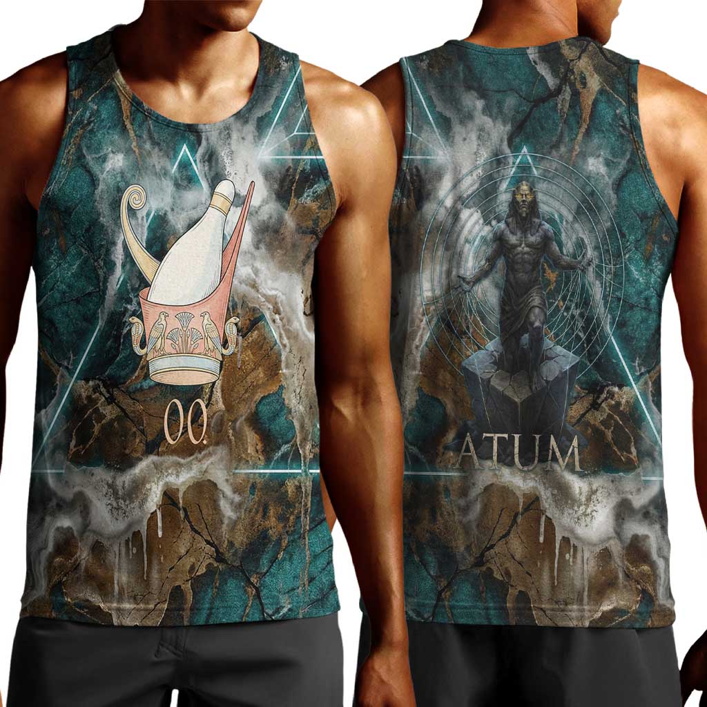 Atum Men Tank Top Ancient Egyptian Teal Marble Smoke, Solar Barque Crown, Creator Deity Statue