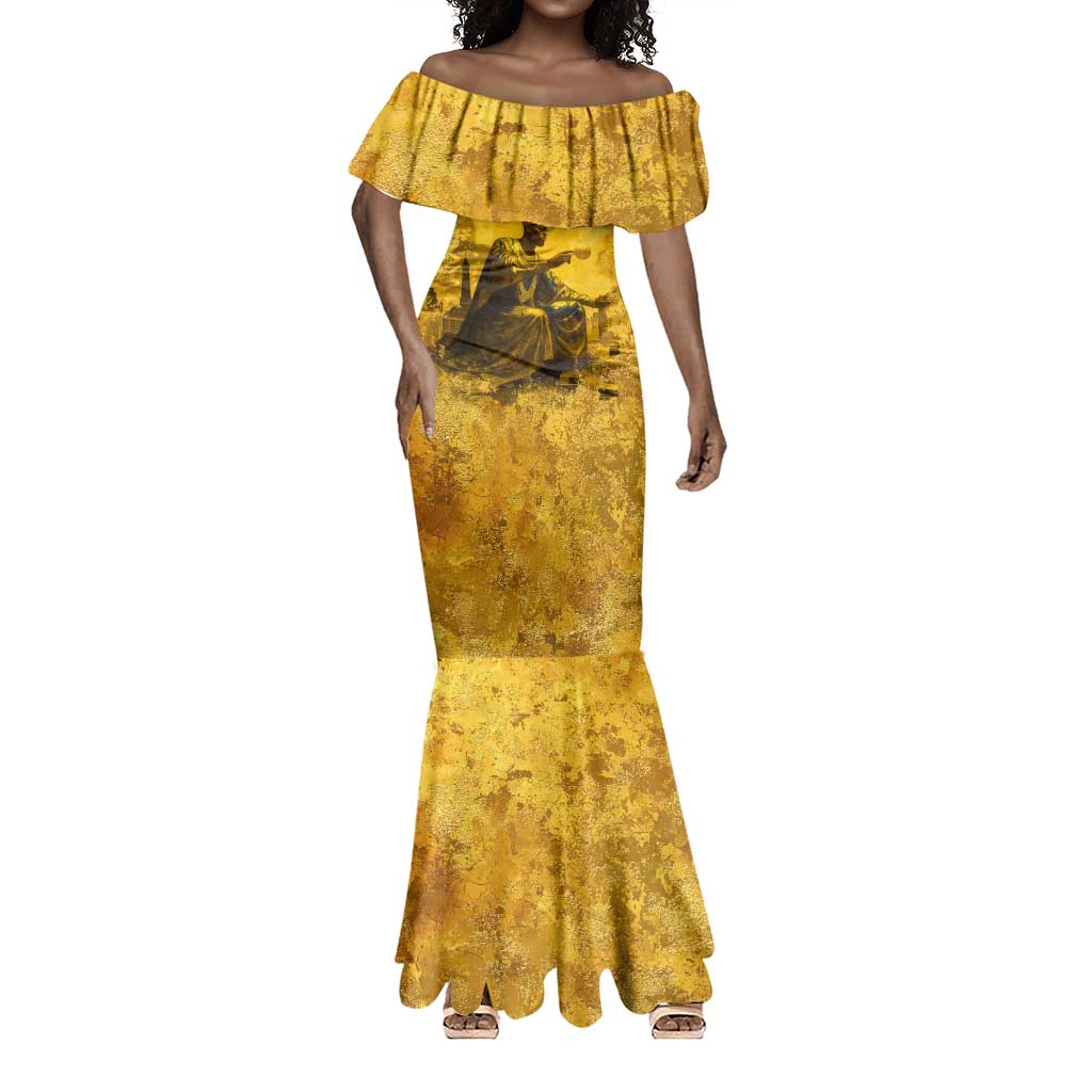 Mansa Musa Mermaid Dress Golden Legacy Theme Ancient Map Regal Portrait of Mali Emperor Timbuktu