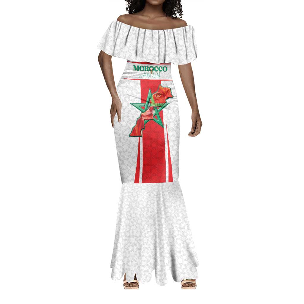 Morocco Football Custom Mermaid Dress Atlas Lions Champions 2025 - White