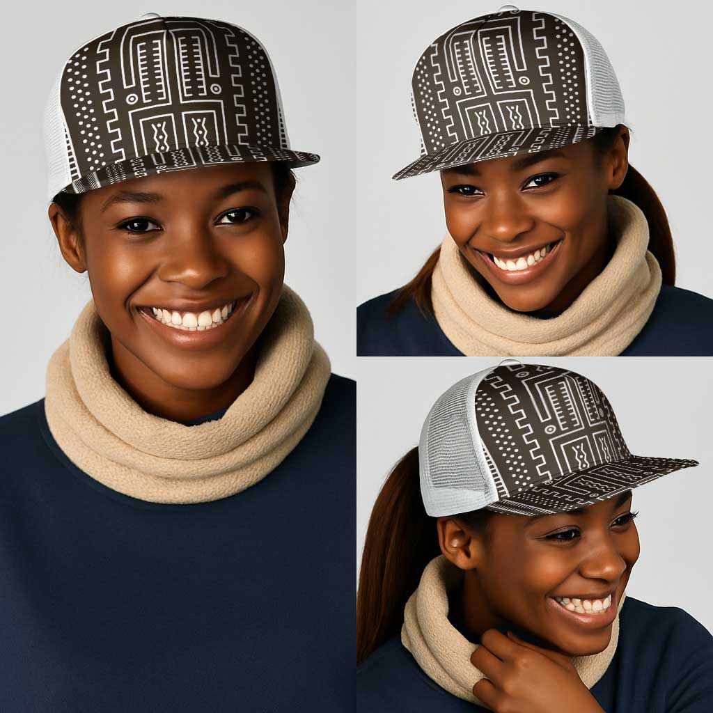 Mali Mud Cloth Bogolanfini Pattern Mesh Trucker Cap
