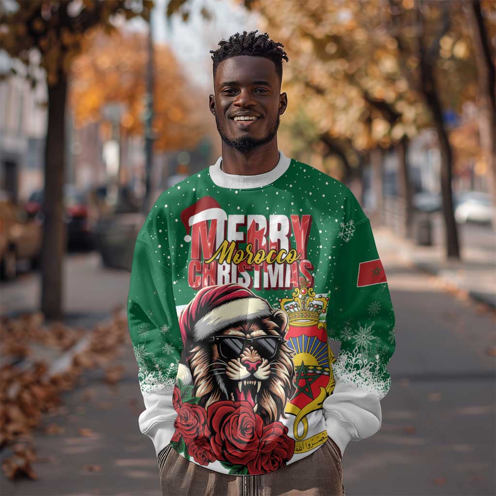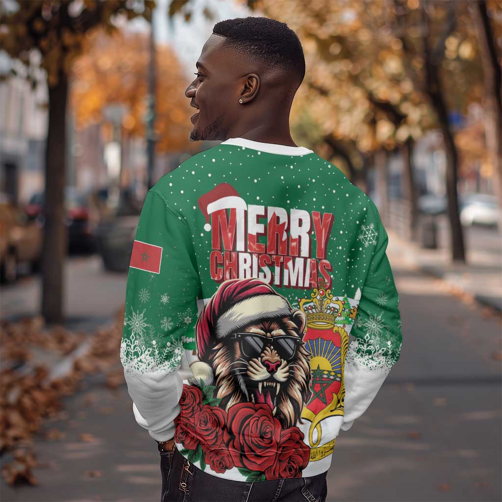 Morocco Christmas Sweatshirt Santa Lion With Rose Xmas Vibe