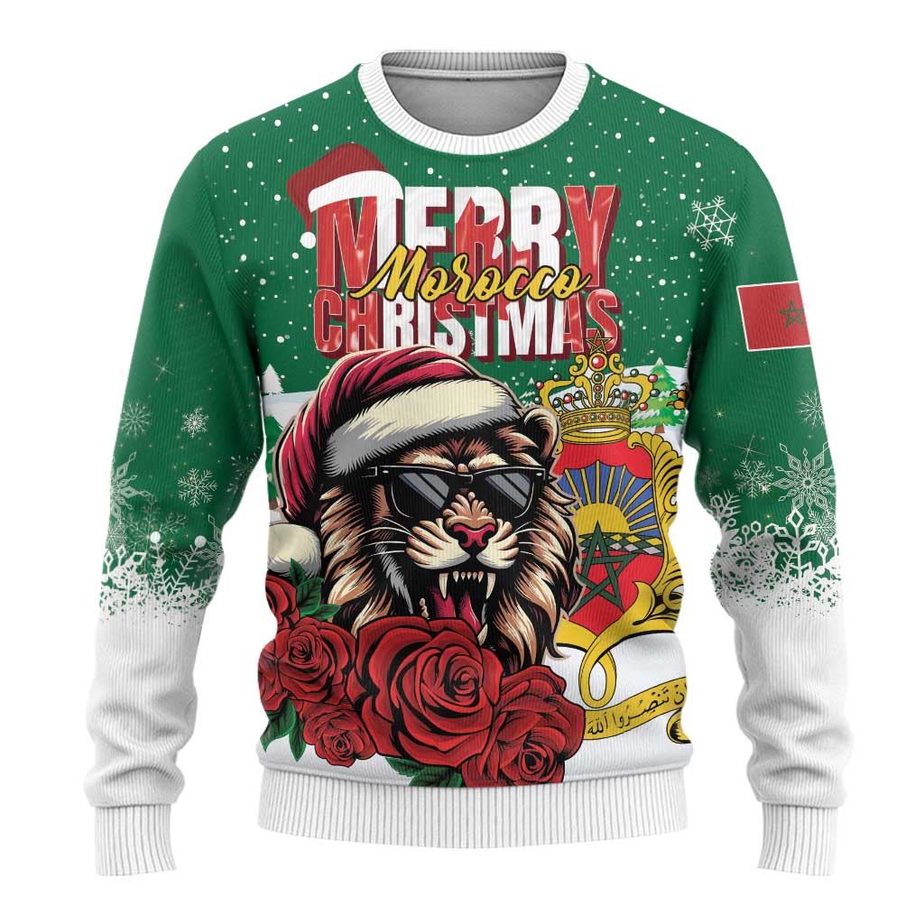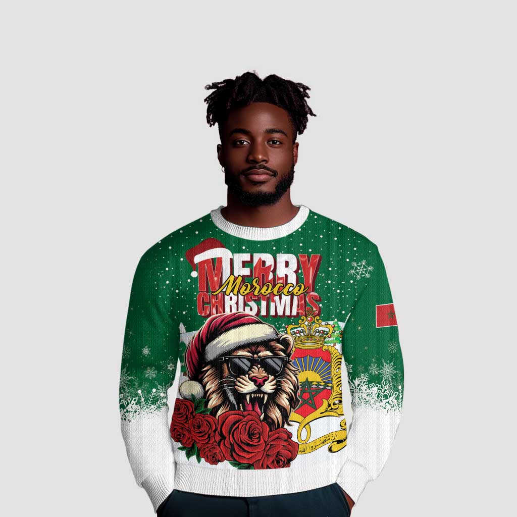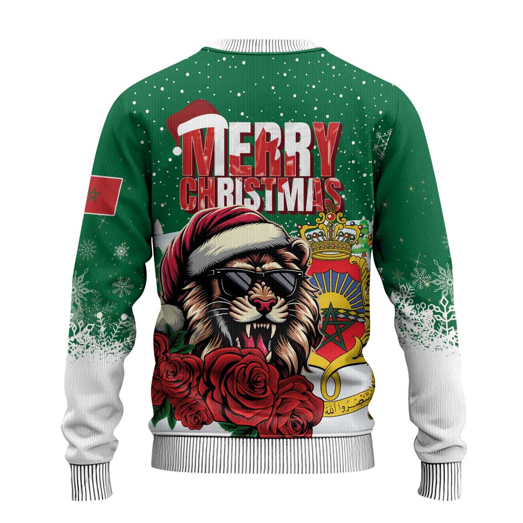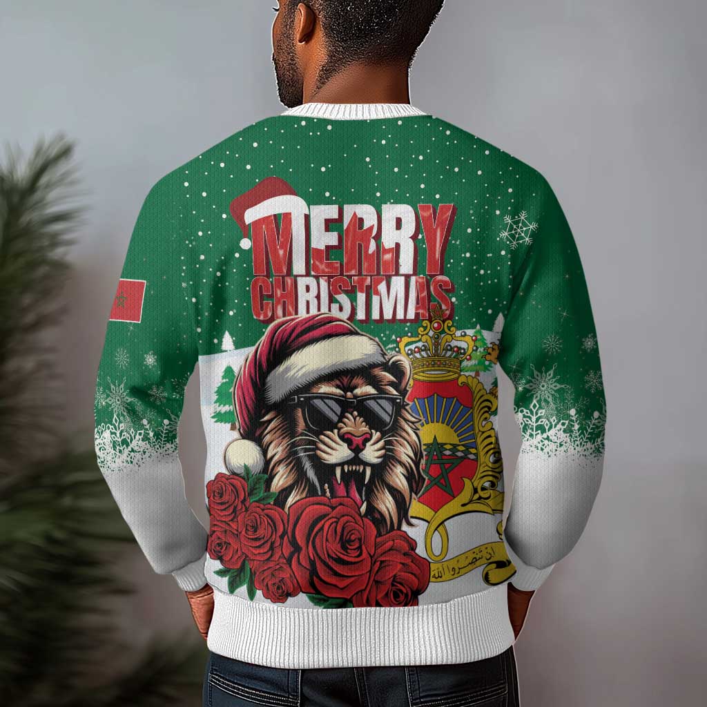 Morocco Christmas Ugly Christmas Sweater Santa Lion With Rose Xmas Vibe