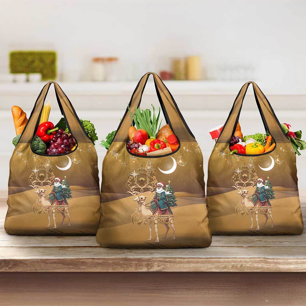 Afro Christmas in Sahara Morocco Grocery Bag Black Santa Riding Camel