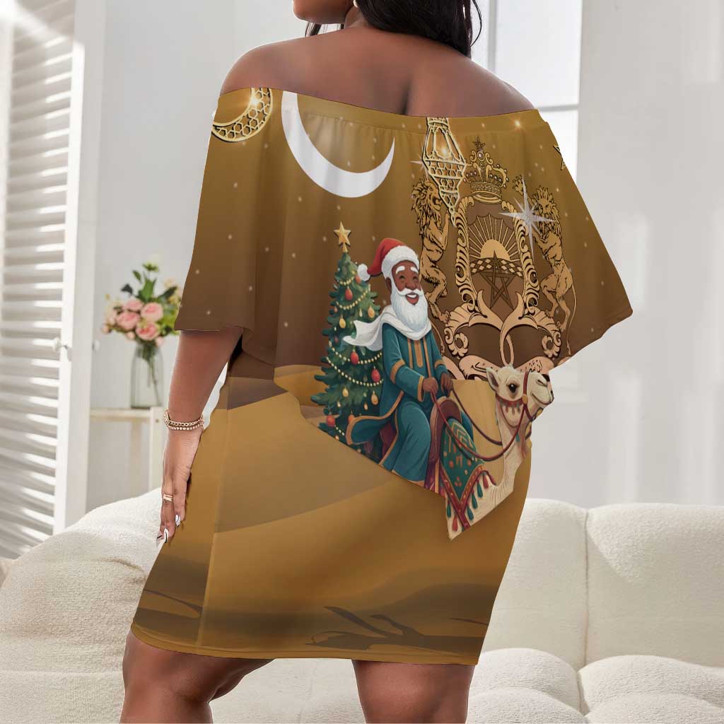 Afro Christmas in Sahara Morocco Off Shoulder Short Dress Black Santa Riding Camel