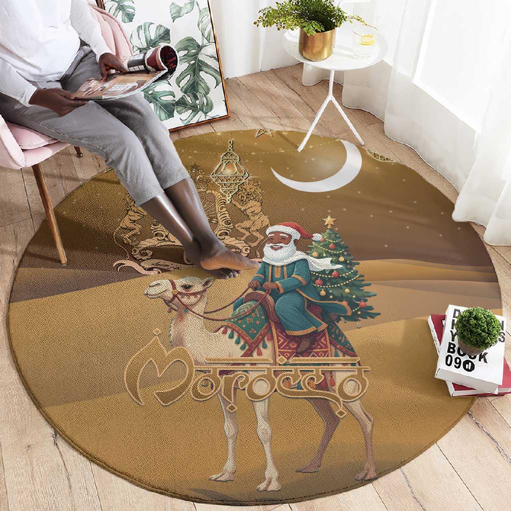 Afro Christmas in Sahara Morocco Round Carpet Black Santa Riding Camel