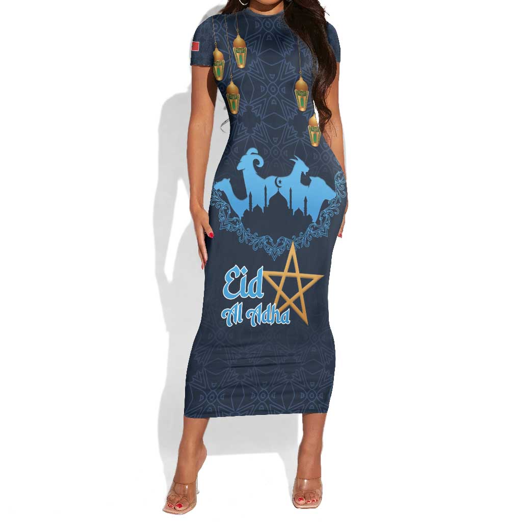 Happy Eid Al-Adha Short Sleeve Bodycon Dress Morocco Mubarak