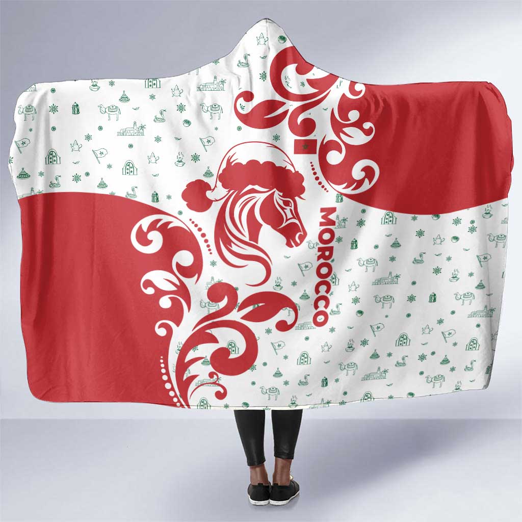 Morocco Christmas Hooded Blanket Red Horse Santa Hat Arabesque Pattern a