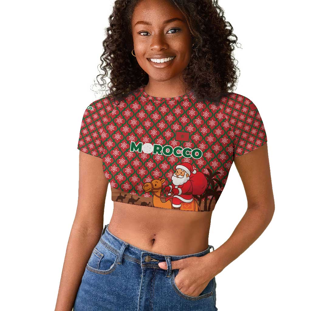 Morocco Christmas Raglan Cropped T shirt Santa Claus Camel Caravan Desert Scene