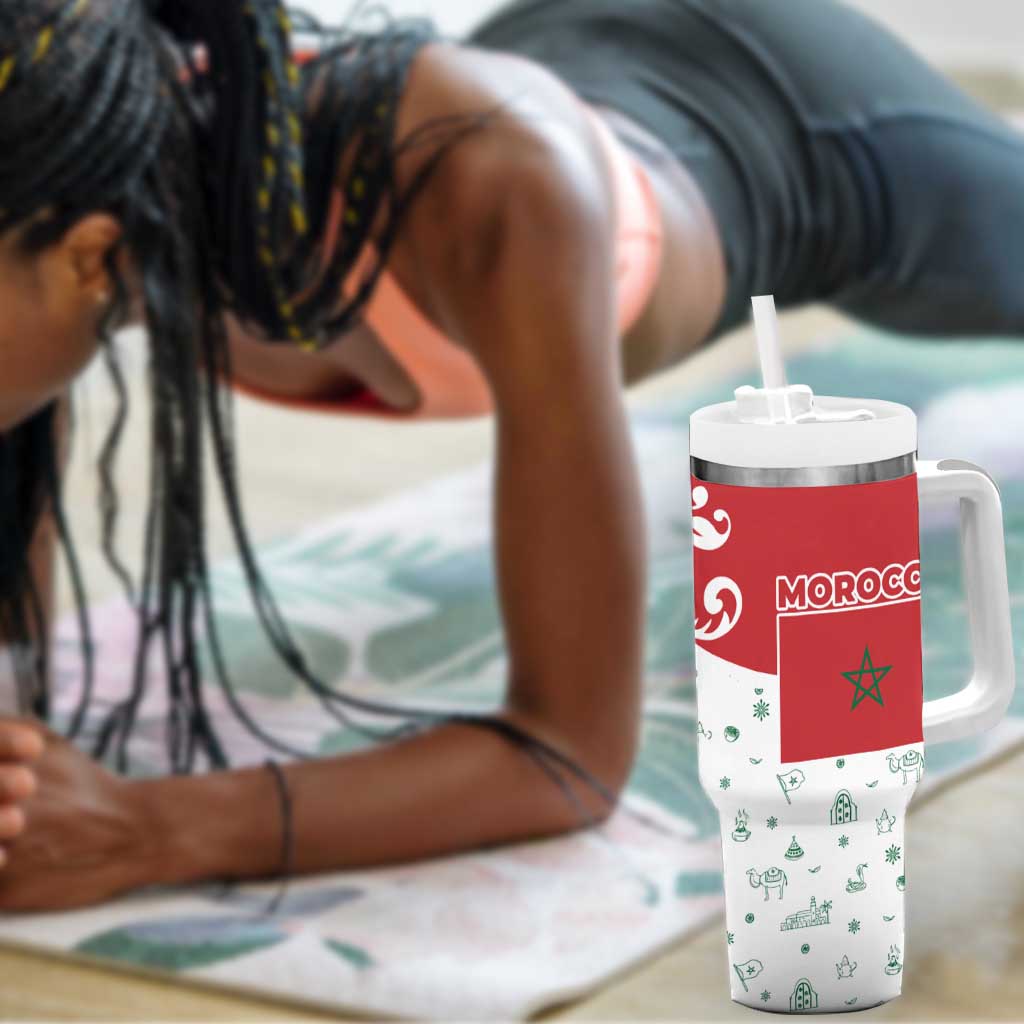 Morocco Christmas Tumbler With Handle Red Horse Santa Hat Arabesque Pattern a