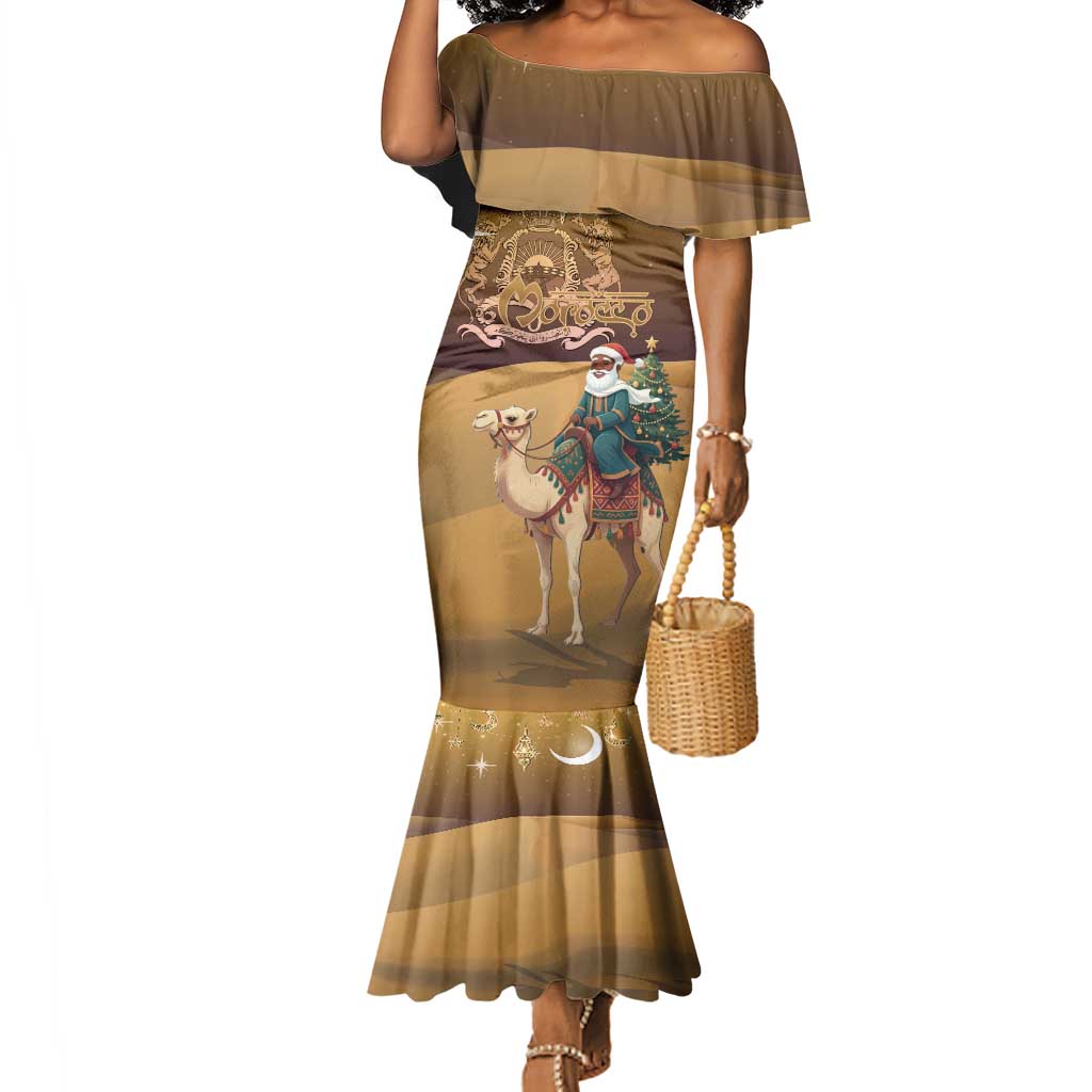 Afro Christmas in Sahara Morocco Mermaid Dress Black Santa Riding Camel