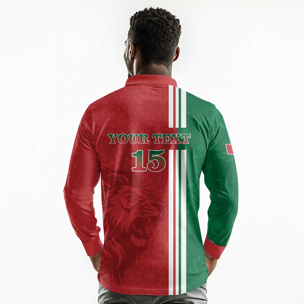 Custom Afro Morocco Football Long Sleeve Polo Shirt With Islamic Pattern