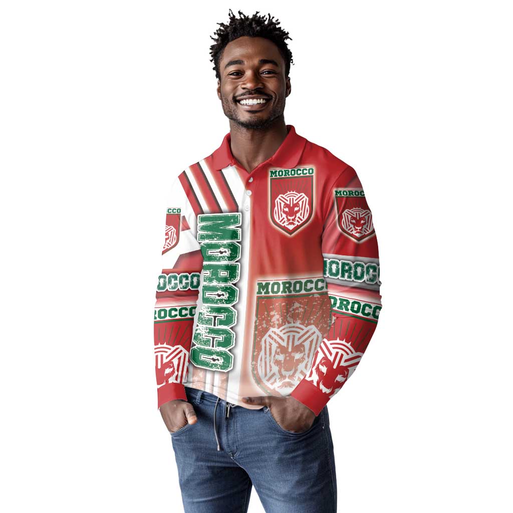 Morocco Soccer Long Sleeve Polo Shirt Atlas Lions Football - Road To Champion