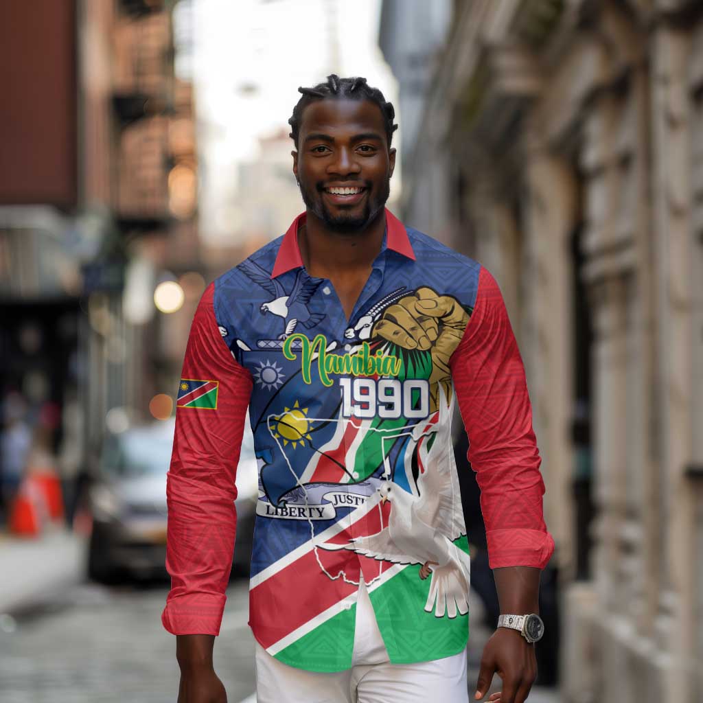 Afro Namibia Independence Day Long Sleeve Button Shirt Namibian 1990 African Pattern