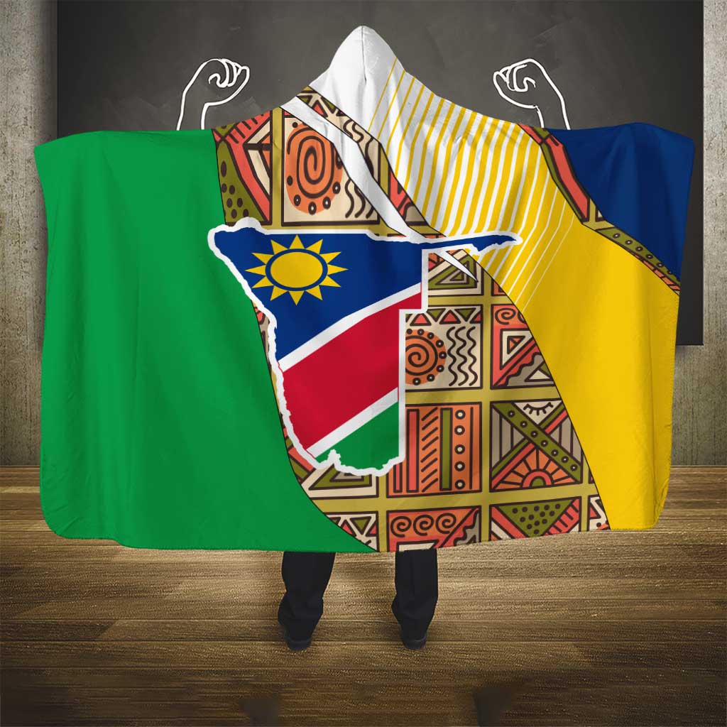 Afro Namibia Map Hooded Blanket National Emblem and Cultural Motif Design TS04