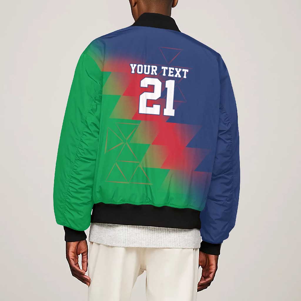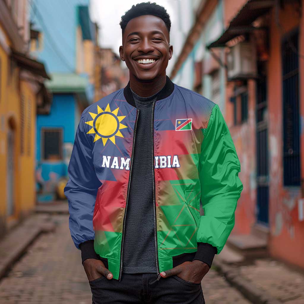 Custom Cricket African Namibia Bomber Jacket Namibian Gold Sun Flag Motif
