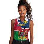 Namibia Independence Day Women Sleeveless Polo Shirt with Coat of Arms in Unique Style