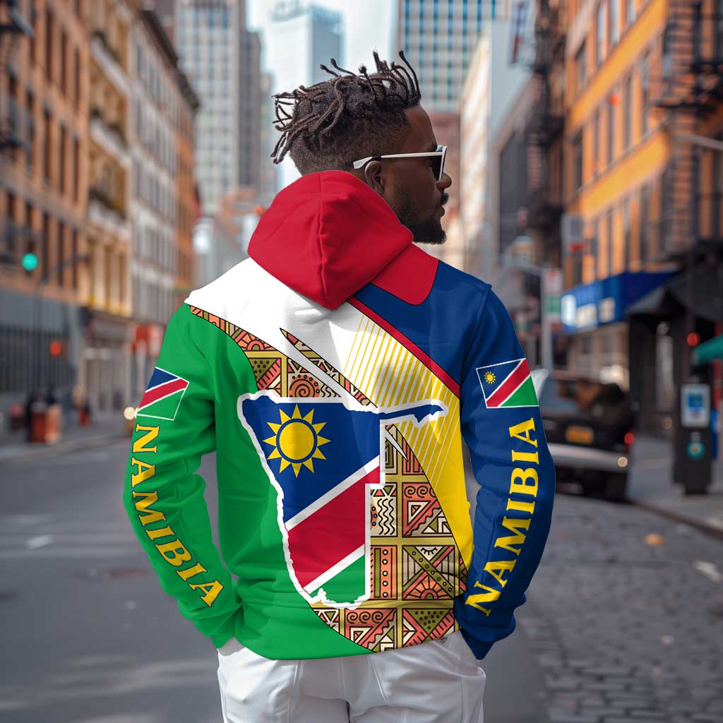 Afro Namibia Map Zip Hoodie National Emblem and Cultural Motif Design