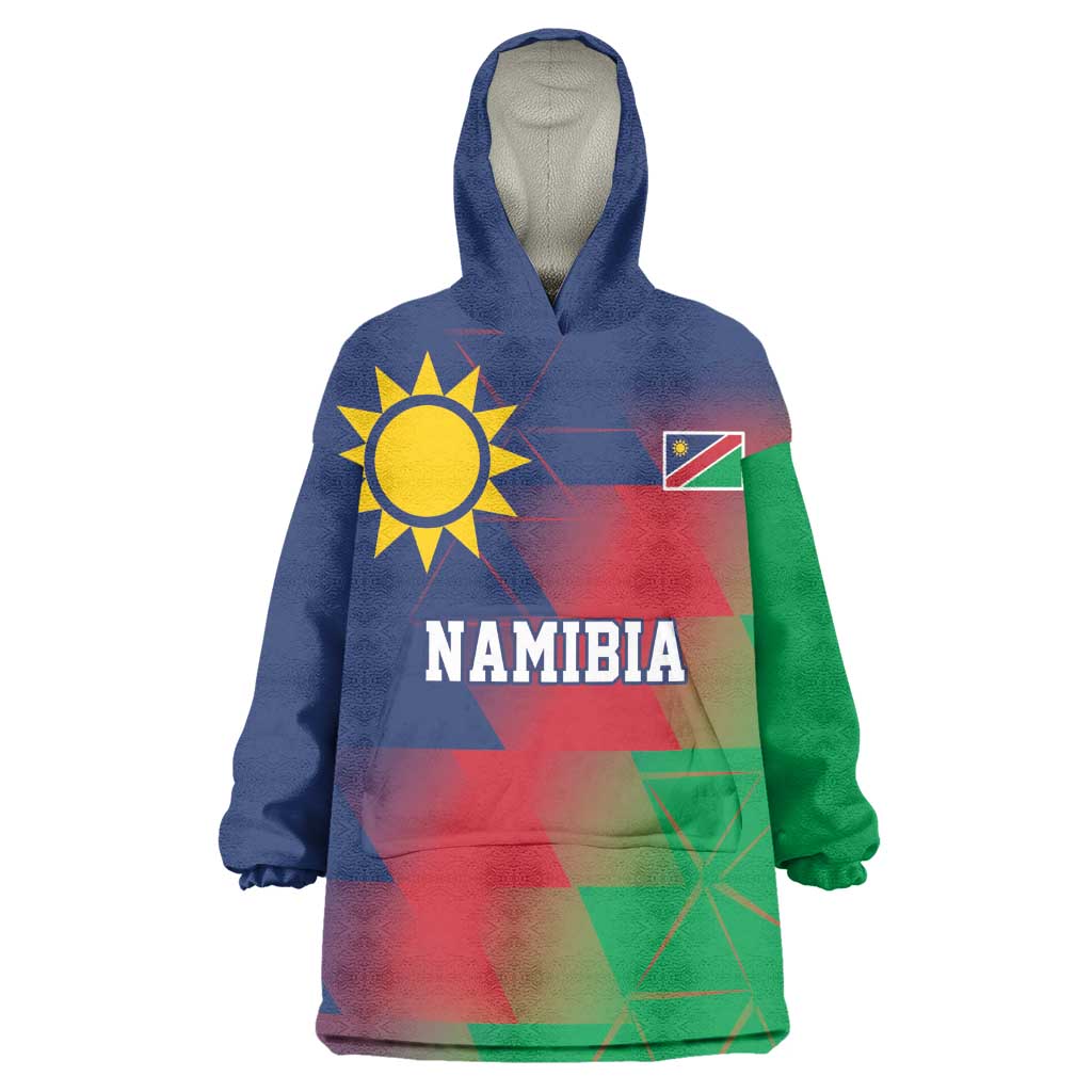 Custom Cricket African Namibia Kid Wearable Blanket Hoodie Namibian Gold Sun Flag Motif