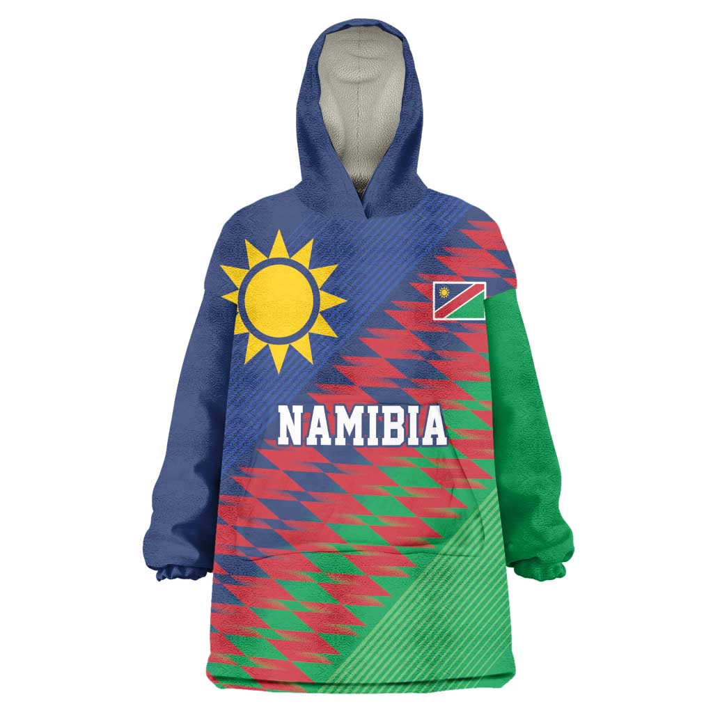 Custom Cricket African Namibia Kid Wearable Blanket Hoodie Namibian Sporty Pattern Flag Motif