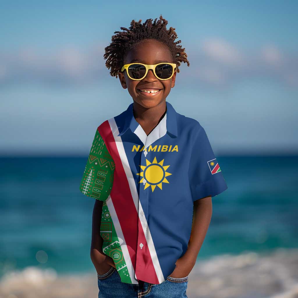 Namibia Gemsbok Kid Hawaiian Shirt Flag Design with African Patterns