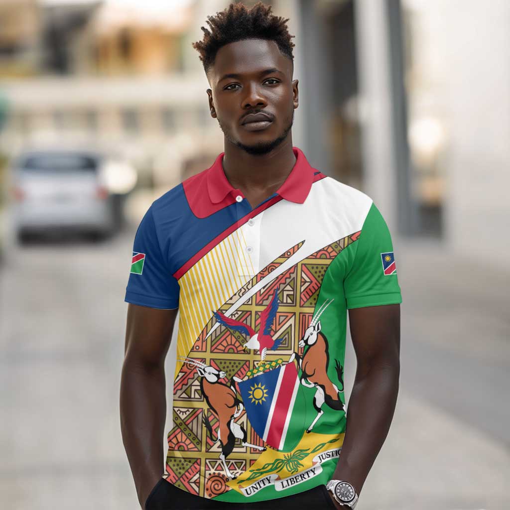 Afro Namibia Map Polo Shirt National Emblem and Cultural Motif Design
