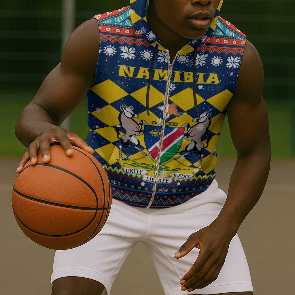 Namibia Christmas Sleeveless Zip Hoodie Coat of Arms and Flag Map Motif