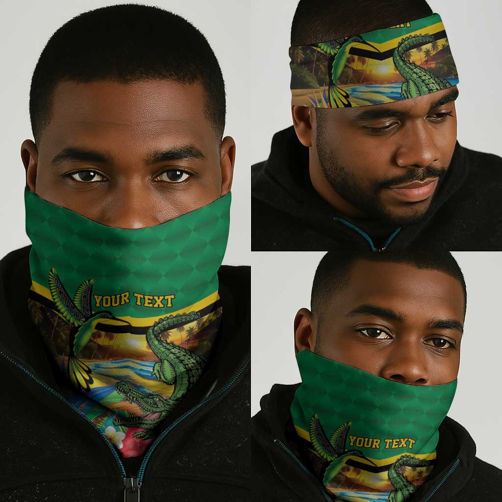 African-American Jamica Personalized Neck Gaiter Hummingbird and Crocodiles Tropical