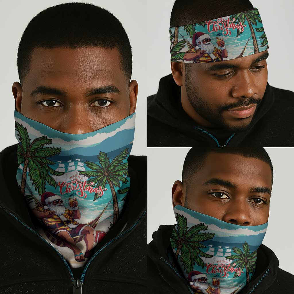 Afro Christmas in Liberia Neck Gaiter Santa Chill on Tropical Beach