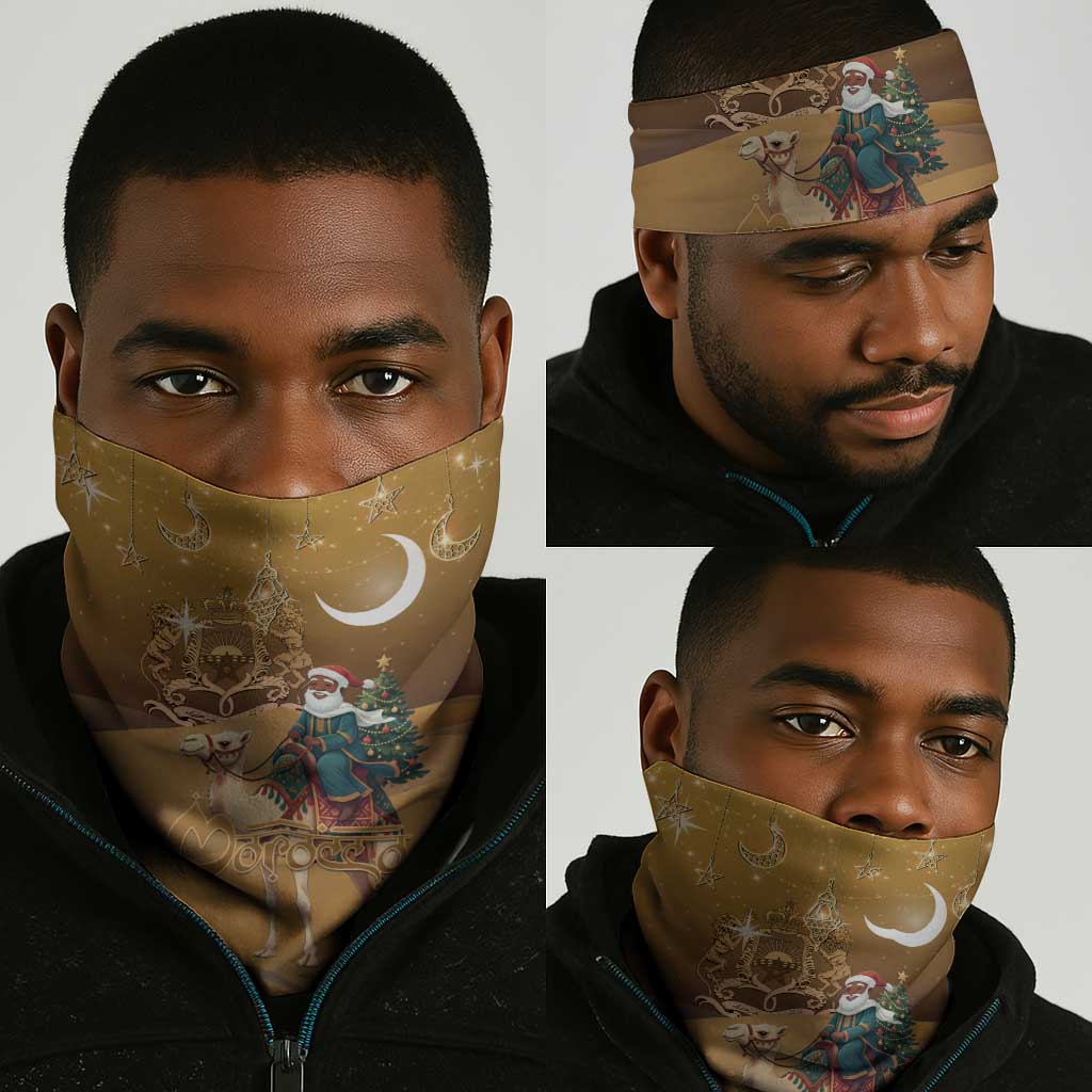 Afro Christmas in Sahara Morocco Neck Gaiter Black Santa Riding Camel