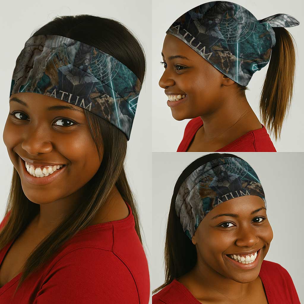 Atum Neck Gaiter Ancient Egyptian Teal Marble Smoke, Solar Barque Crown, Creator Deity Statue