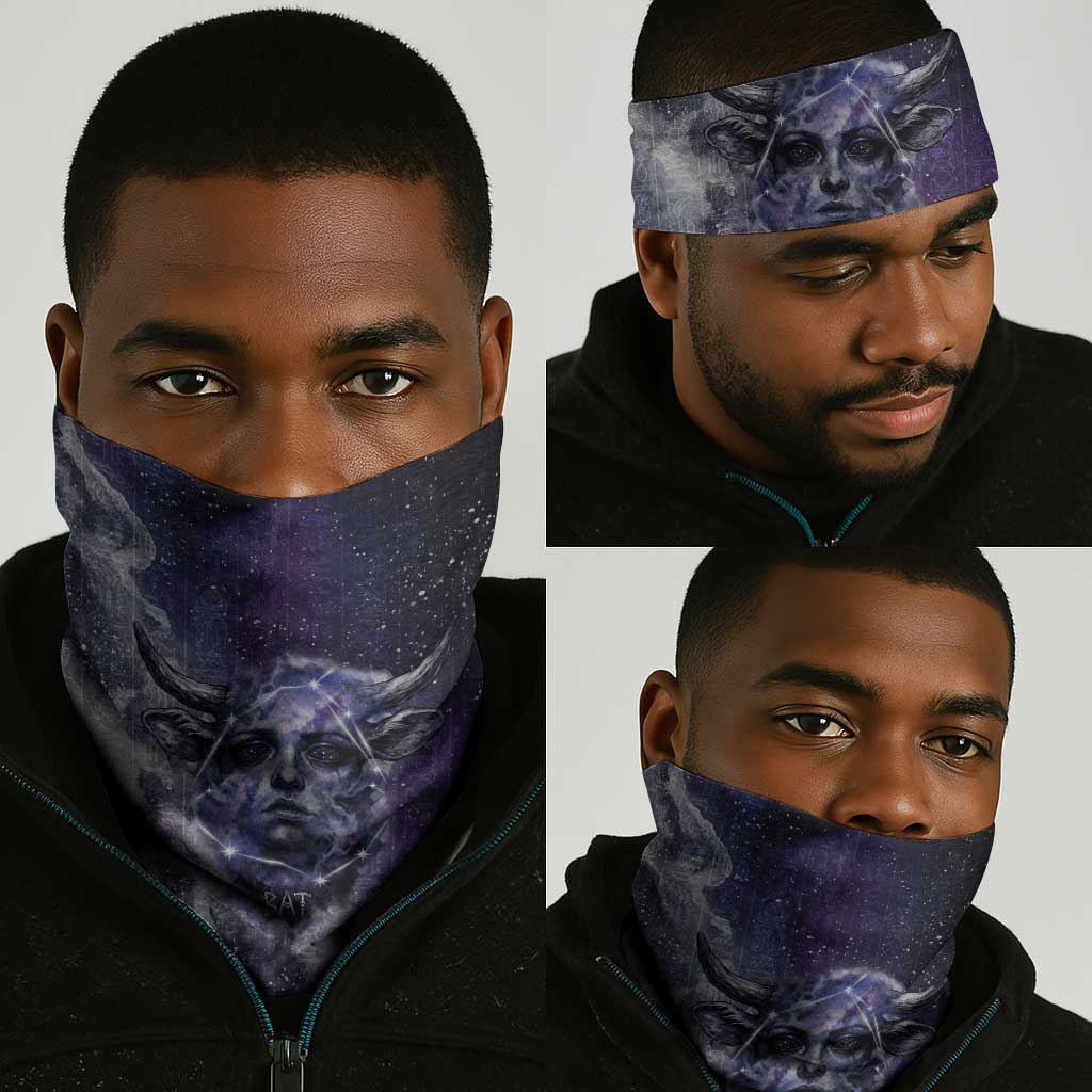 Bat Egyptian Neck Gaiter Cow Goddess Celestial Face Horn Ring Gem Cosmic Starry Sky