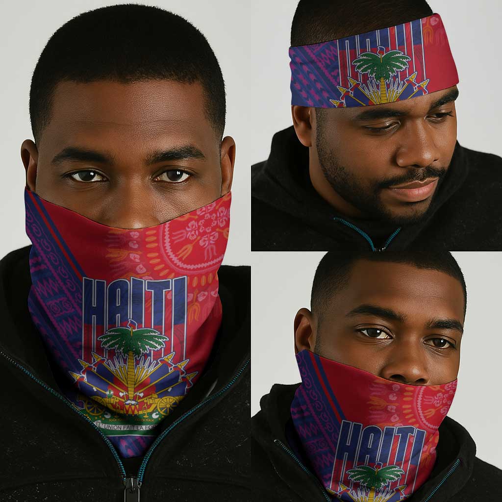 Haiti National Emblem Neck Gaiter Dashiki and Polynesian Pattern